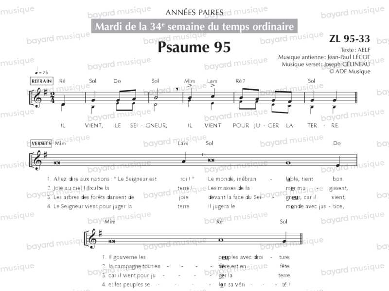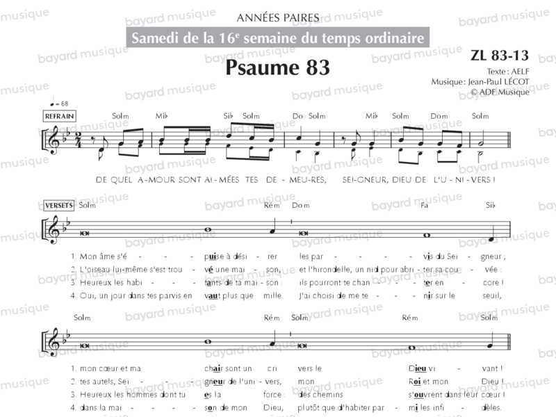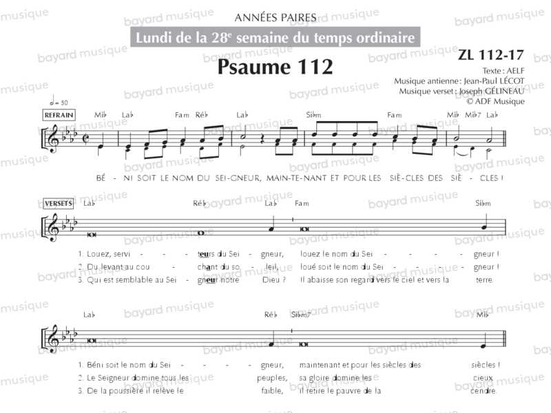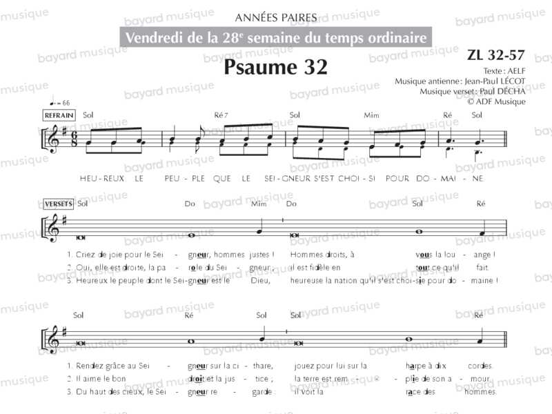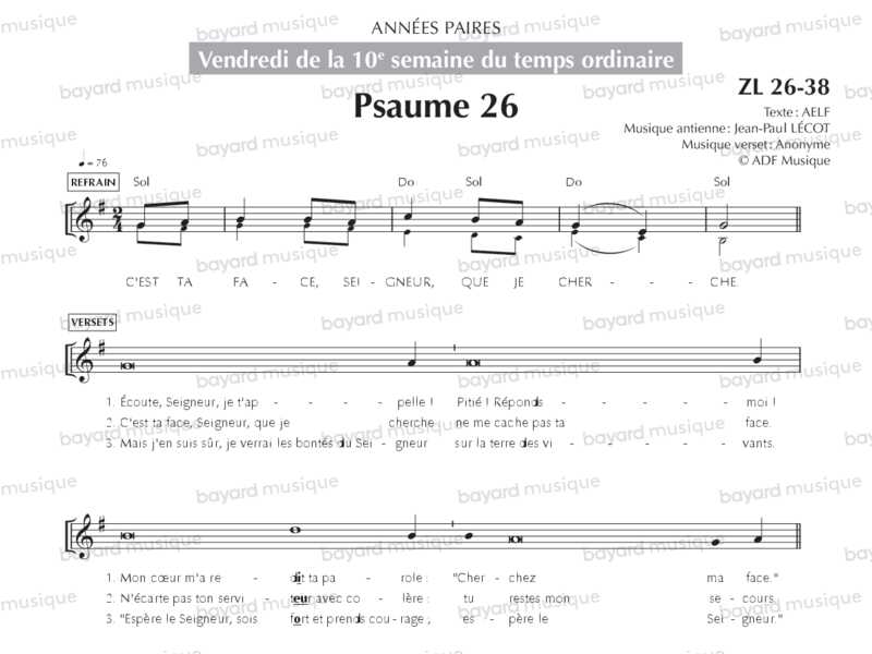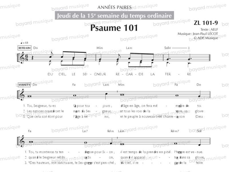 Les psaumes et acclamations des messes de semaine composés par Jean-Paul Lécot pour le temps ordinaire des années paires.