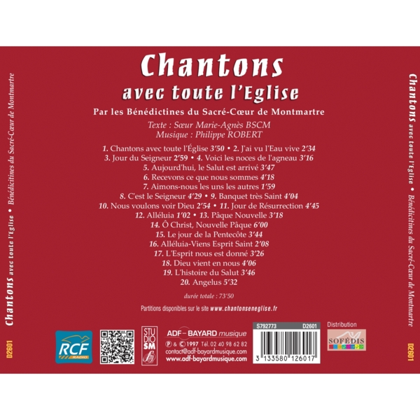 Ce disque est le fruit d'une collaboration entre Philippe Robert, membre de la C.I.P.L. et notre congrégation depuis onze ans. Dans les lieux de prière où nous sommes implantées, nous célébrons la liturgie au cœur de l'Eglise et nous avons à cœur d'y introduire tous ceux qui viennent y prier. Philippe Robert a mis patiemment son être de chrétien et de musicien au service de la liturgie. C'est ainsi qu'au fil des ans il a composé la mélodie des antiennes et psaumes de l'office pour tous les temps liturgiques ainsi que de nombreuses pièces pour les célébrations eucharistiques. Nous sommes heureux de partager avec vous ces chants centrés en général sur la célébration du dimanche et des fêtes. Soeur Marie-Agnès (Bénédictines du Sacré Coeur de Montmartre)